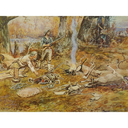 Breaking Camp White Modern Wood Framed Art Print by Russell, Charles Marion