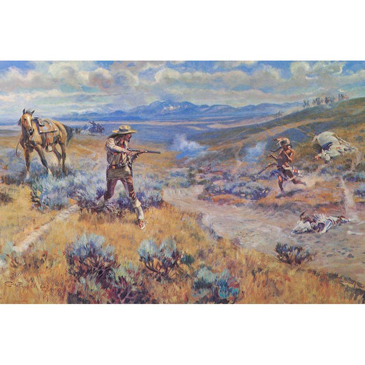 Shooting a Spy White Modern Wood Framed Art Print by Russell, Charles Marion