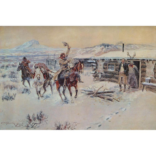 Christmas at the Line Camp White Modern Wood Framed Art Print by Russell, Charles Marion
