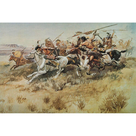Indians Attacking White Modern Wood Framed Art Print by Russell, Charles Marion