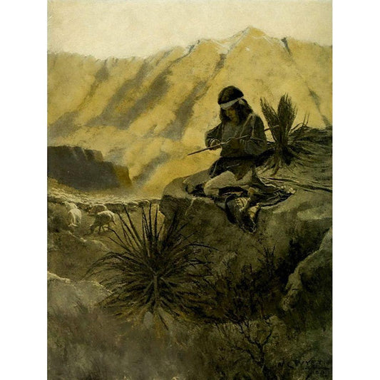 Navajo herder in the foothills White Modern Wood Framed Art Print by Wyeth, Newell