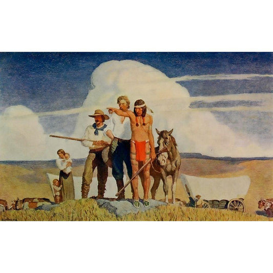 Pioneers-the opening of the prairies White Modern Wood Framed Art Print by Wyeth, Newell