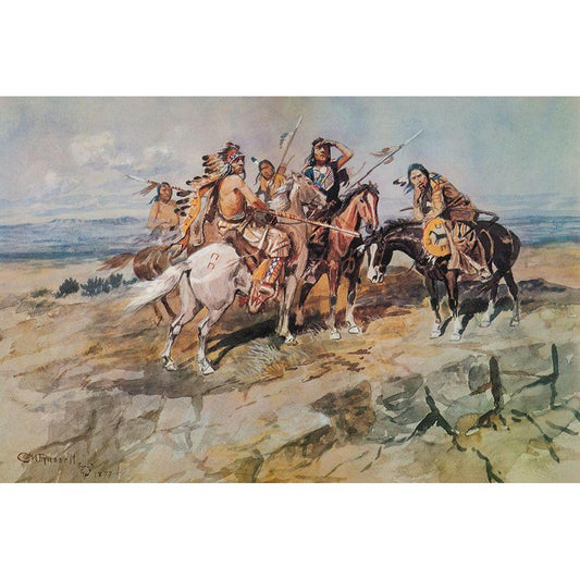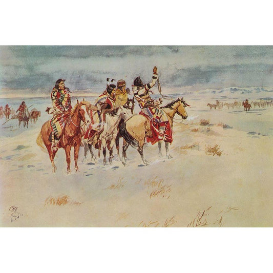 Approach of the White Men White Modern Wood Framed Art Print by Russell, Charles Marion