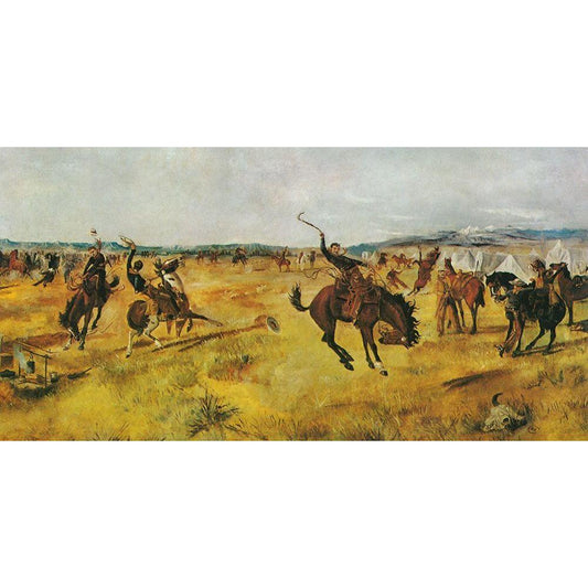 Bronco Busting White Modern Wood Framed Art Print by Russell, Charles Marion