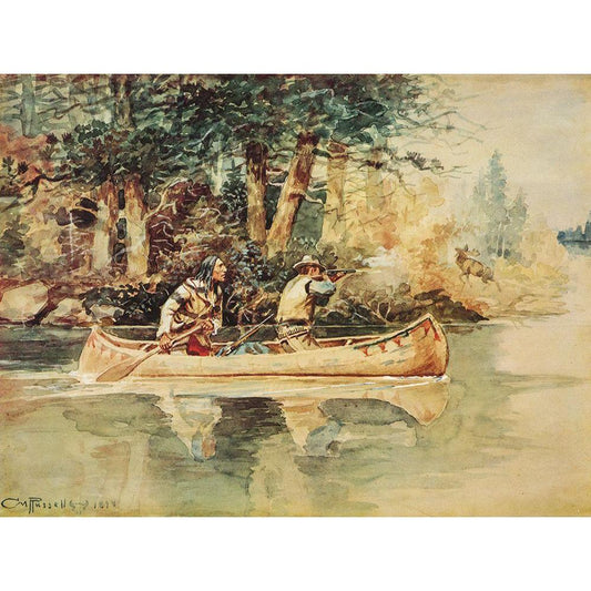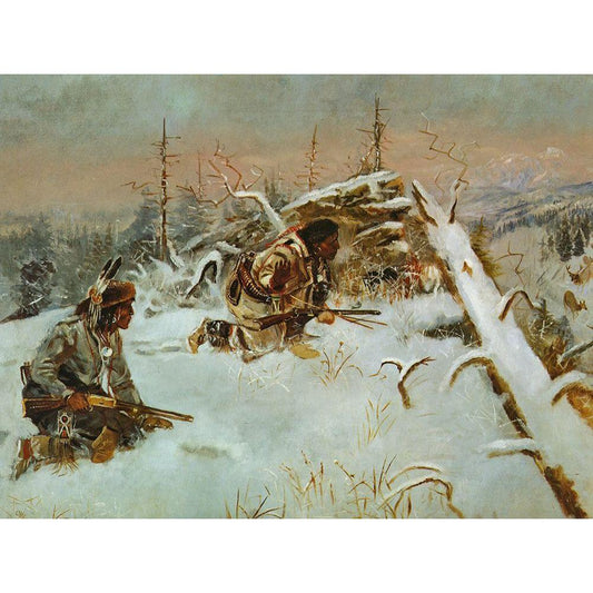 Crow Indians Hunting Elk White Modern Wood Framed Art Print by Russell, Charles Marion