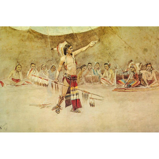 Council of War White Modern Wood Framed Art Print by Russell, Charles Marion