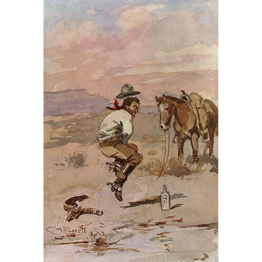 Bronc in Cow Camp White Modern Wood Framed Art Print by Russell, Charles Marion