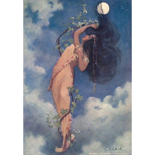 From the full moon fell Nokomis from Story of Hiawatha 1910 White Modern Wood Framed Art Print by Kirk, Maria