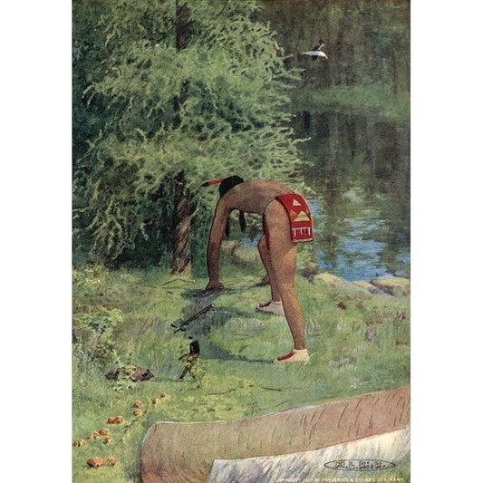Seven long days and nights he sat there from Story of Hiawatha 1910 White Modern Wood Framed Art Print by Kirk, Maria