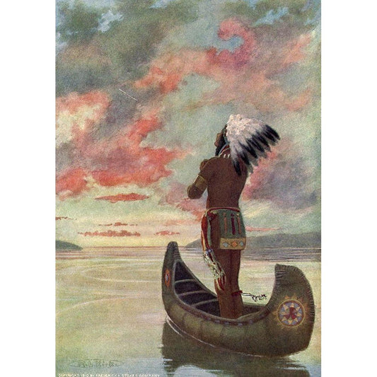 Hiawatha sailed into the fiery sunset from Story of Hiawatha 1910 White Modern Wood Framed Art Print by Kirk, Maria