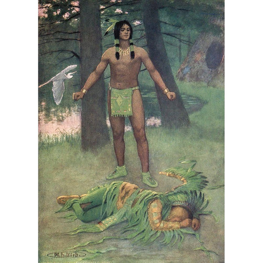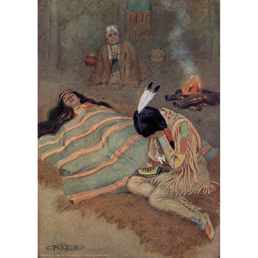He lay there dead from Story of Hiawatha 1910 White Modern Wood Framed Art Print by Kirk, Maria