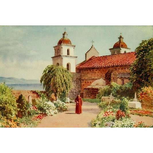 The Cemetery-Santa Barbara Mission-California 1914 White Modern Wood Framed Art Print by Palmer, Sutton