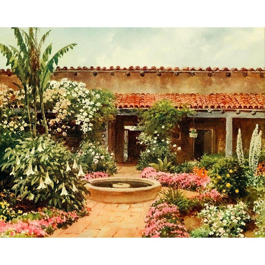The Pation-old Spanish residence-California 1914 White Modern Wood Framed Art Print by Palmer, Sutton