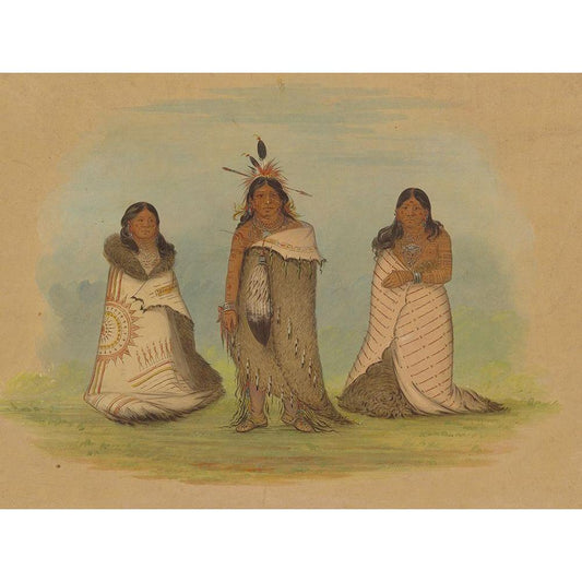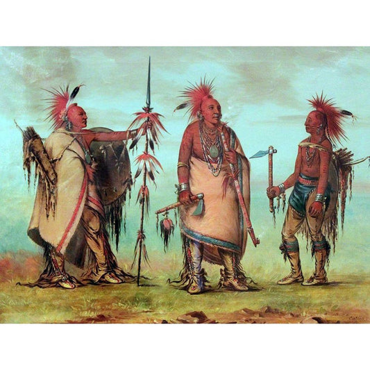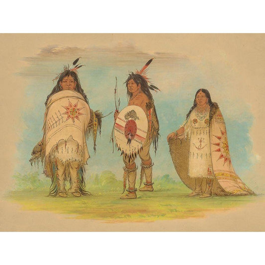 Three Riccarree Indians, 1861 White Modern Wood Framed Art Print by Catlin, George