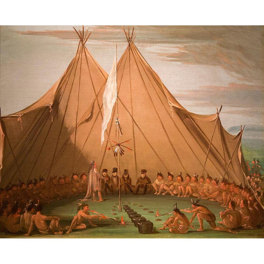 La Salle Taking Possession of the Land at the Mouth of the Arkansas. March 10, 1682 White Modern Wood Framed Art Print by Catlin, George