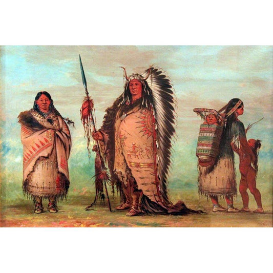 Sioux, Black Rock with family White Modern Wood Framed Art Print by Catlin, George