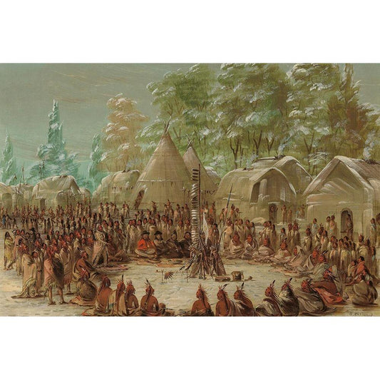 Sioux Village Lac du Cygne White Modern Wood Framed Art Print by Catlin, George