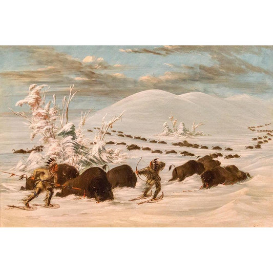 Winter Sport of Killing Buffalo White Modern Wood Framed Art Print by Catlin, George