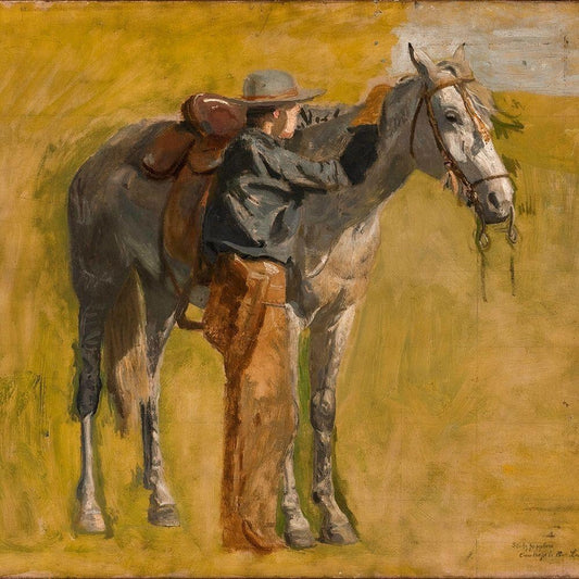 Sketch of a Cowboy at Work White Modern Wood Framed Art Print by Eakins, Thomas