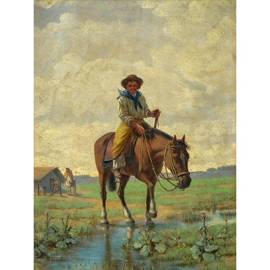 A cowboy White Modern Wood Framed Art Print by Bouchet, Jose