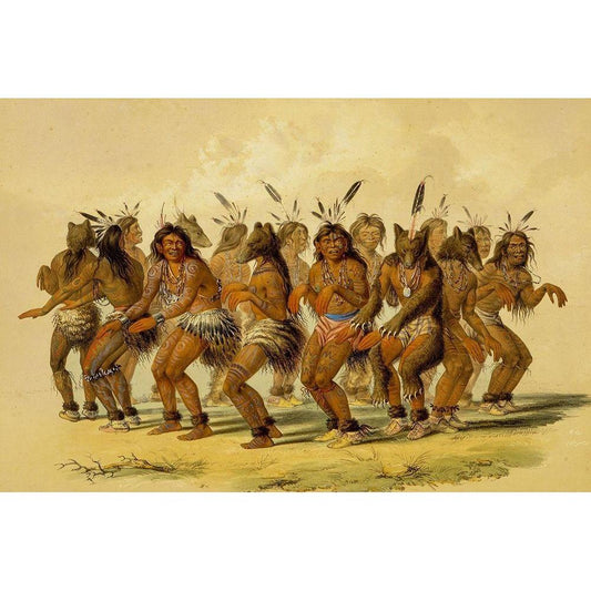 War Dance of the Saukies White Modern Wood Framed Art Print by Catlin, George
