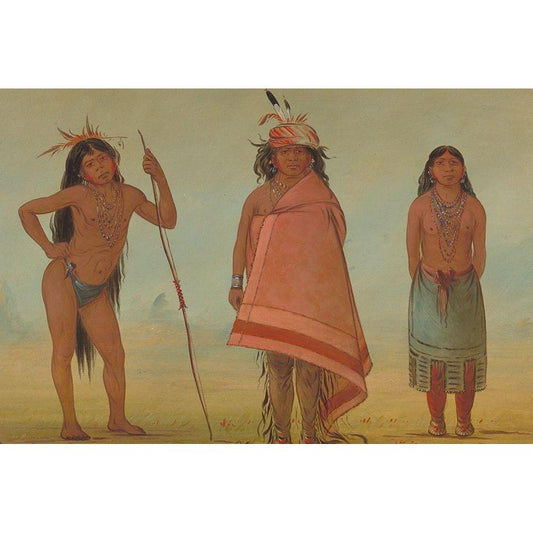 Cochimtee Chief, His Wife, and a Warrior White Modern Wood Framed Art Print by Catlin, George