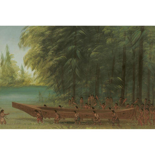 Launching a Canoe Nayas Indians White Modern Wood Framed Art Print by Catlin, George