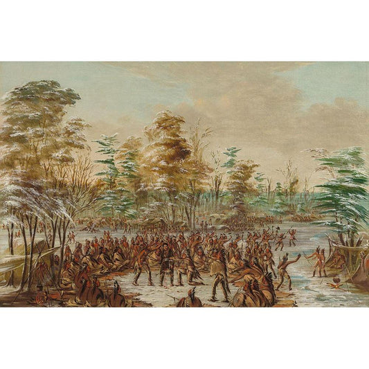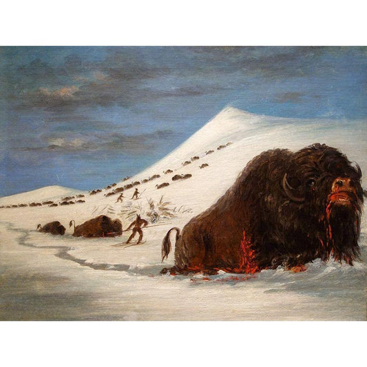 Buffalo Hunt in Snow Shoes White Modern Wood Framed Art Print by Catlin, George