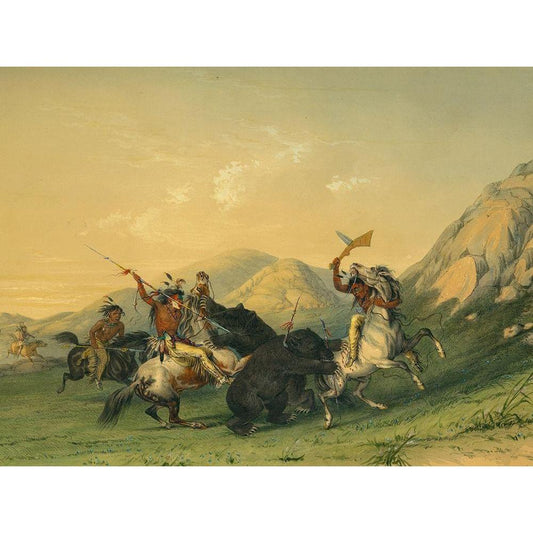 Attacking the Grizzly Bear White Modern Wood Framed Art Print by Catlin, George