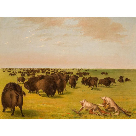 Buffolo Herd Grazing White Modern Wood Framed Art Print by Catlin, George