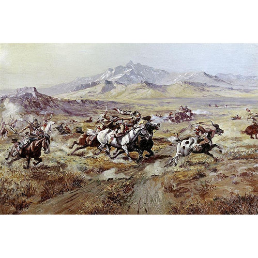 Attack on a Wagon Train White Modern Wood Framed Art Print by Russell, Charles Marion