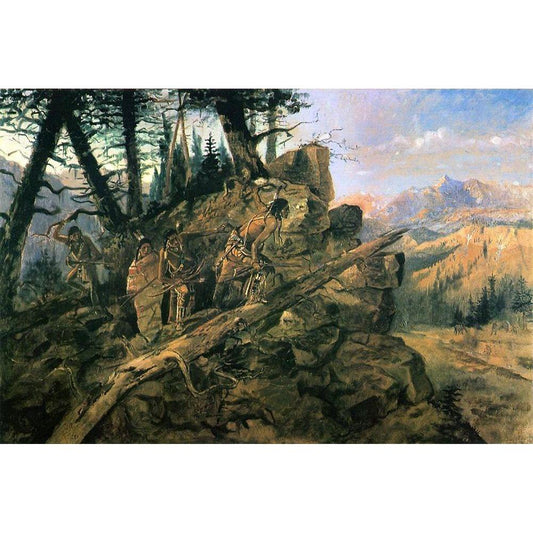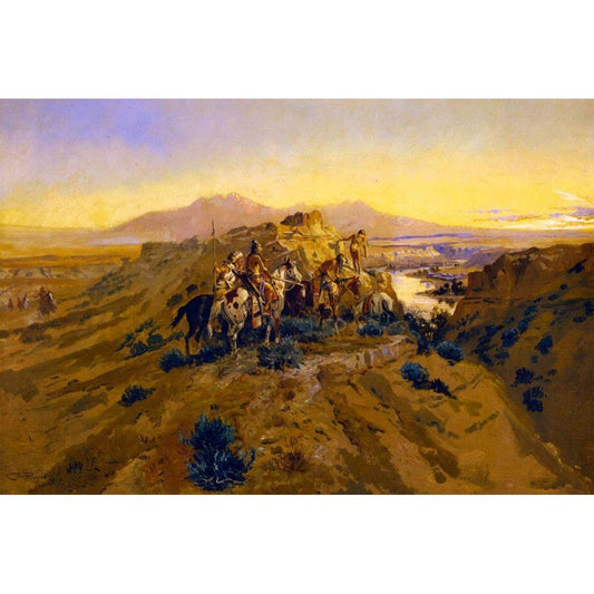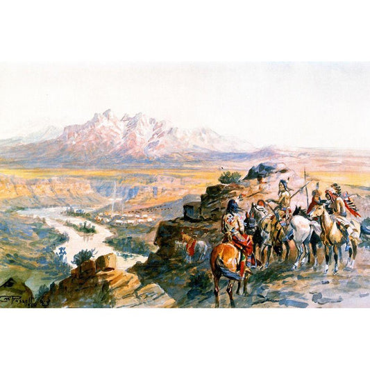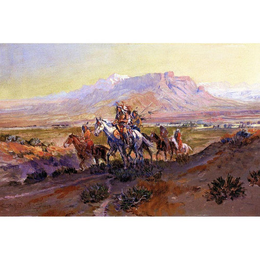 Indian Hunters Return White Modern Wood Framed Art Print by Russell, Charles Marion
