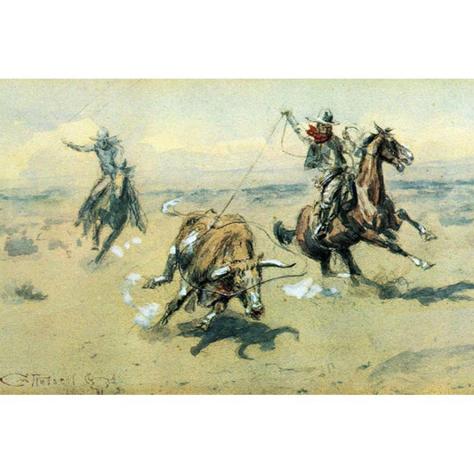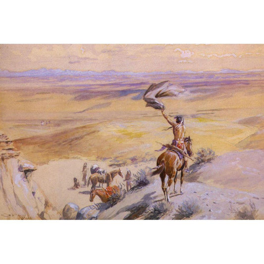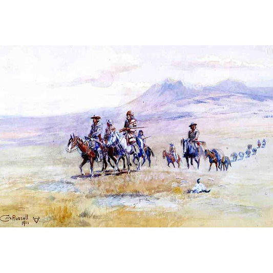 Coming across the Plain White Modern Wood Framed Art Print by Russell, Charles Marion