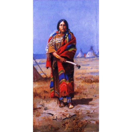Indian Squaw White Modern Wood Framed Art Print by Russell, Charles Marion