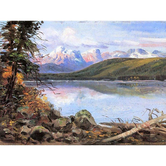 Lake McDonald White Modern Wood Framed Art Print by Russell, Charles Marion