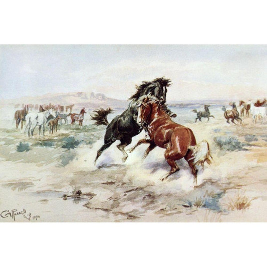 The Challenge White Modern Wood Framed Art Print by Russell, Charles Marion