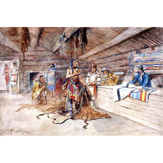 Joe Kipps Trading Post White Modern Wood Framed Art Print by Russell, Charles Marion