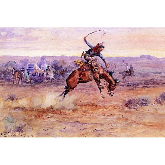 Bucking Bronco White Modern Wood Framed Art Print by Russell, Charles Marion
