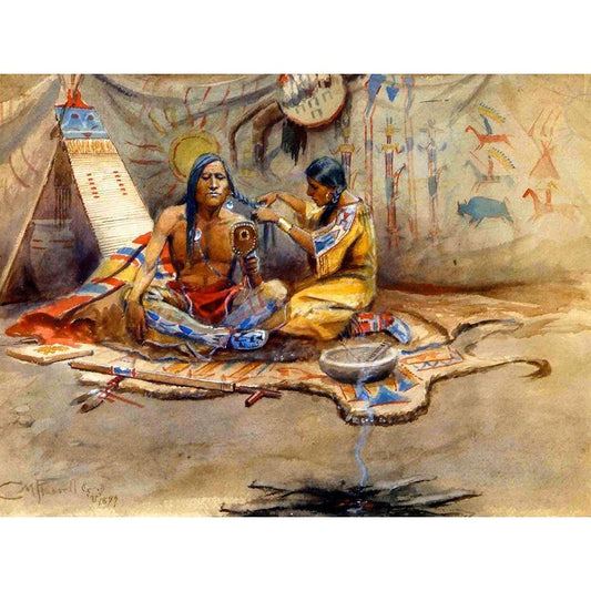 Indian Beauty Parlor White Modern Wood Framed Art Print by Russell, Charles Marion