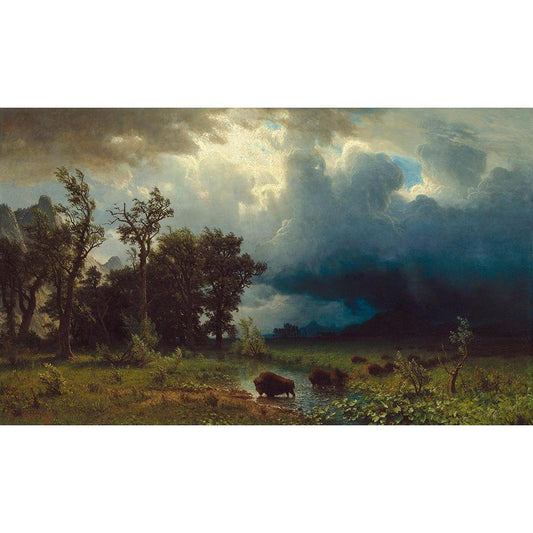 Buffalo Trail: The Impending Storm White Modern Wood Framed Art Print by Bierstadt, Albert