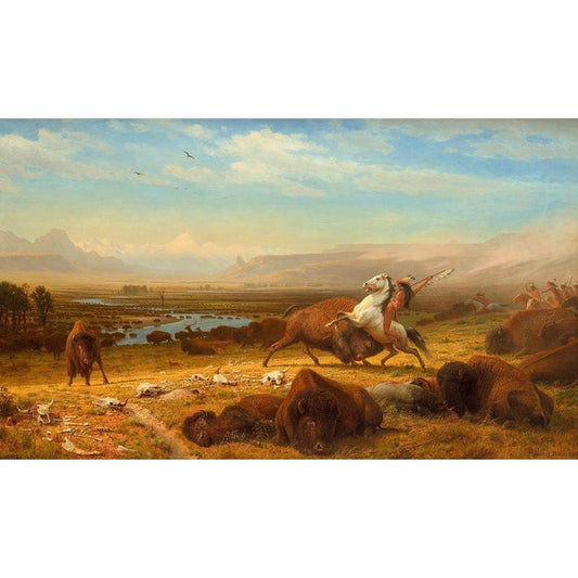 The Last of the Buffalo White Modern Wood Framed Art Print by Bierstadt, Albert