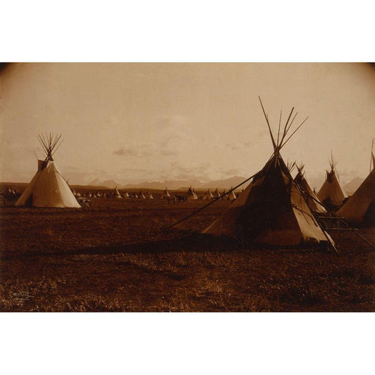 Piegan encampment, ca. 1900 White Modern Wood Framed Art Print by Curtis, Edward