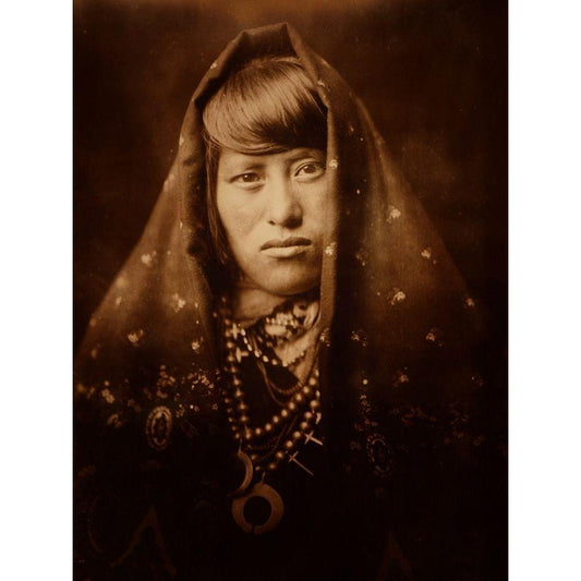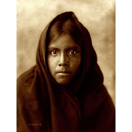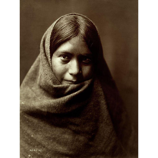 Qahatika girl, Arizona, 1907 White Modern Wood Framed Art Print by Curtis, Edward
