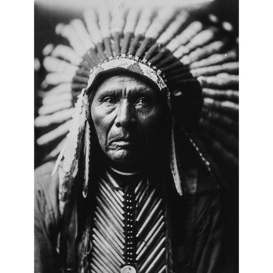 The old-time warrior Nez Perce White Modern Wood Framed Art Print by Curtis, Edward