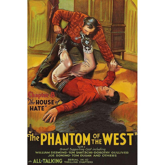 Vintage Westerns: Phantom of the West - House of hate White Modern Wood Framed Art Print by Unknown