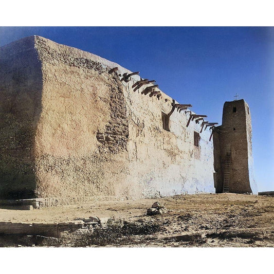 Church Side Wall and Tower-Acoma Pueblo-New Mexico Color White Modern Wood Framed Art Print by Adams, Ansel