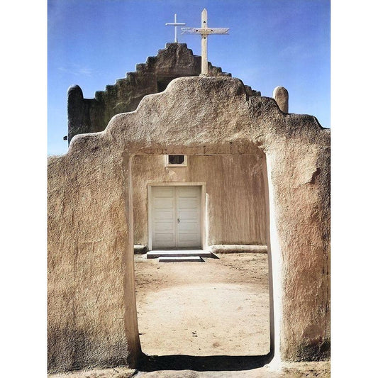 Front view of entrance-Church-Taos Pueblo National Historic Landmark Color White Modern Wood Framed Art Print by Adams, Ansel