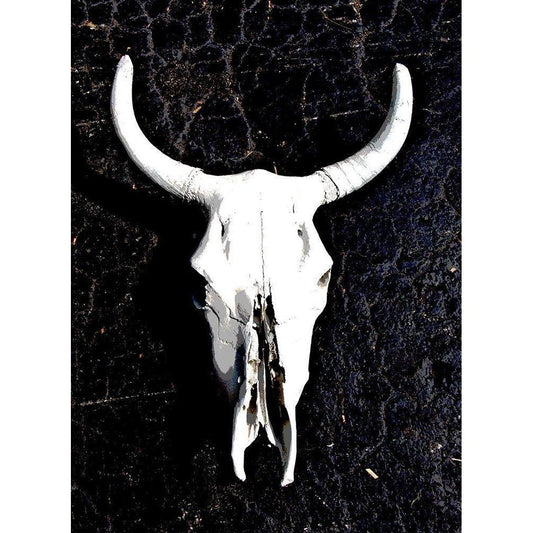 Long Horn Bull White Modern Wood Framed Art Print by Phillip, Jamie