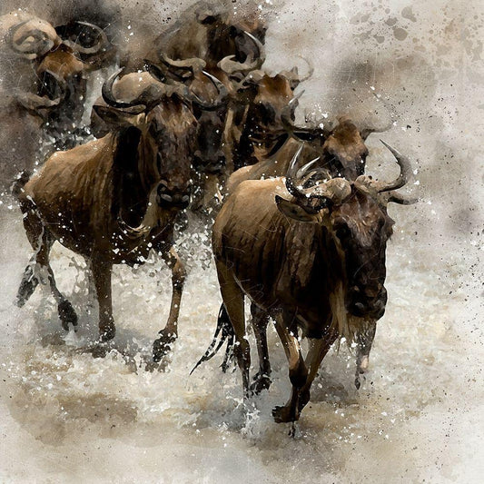 Running Herd III White Modern Wood Framed Art Print by Bolokofsky, Ronald