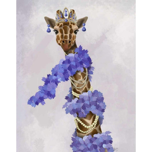 Giraffe with Purple Boa Black Modern Wood Framed Art Print with Double Matting by Fab Funky
